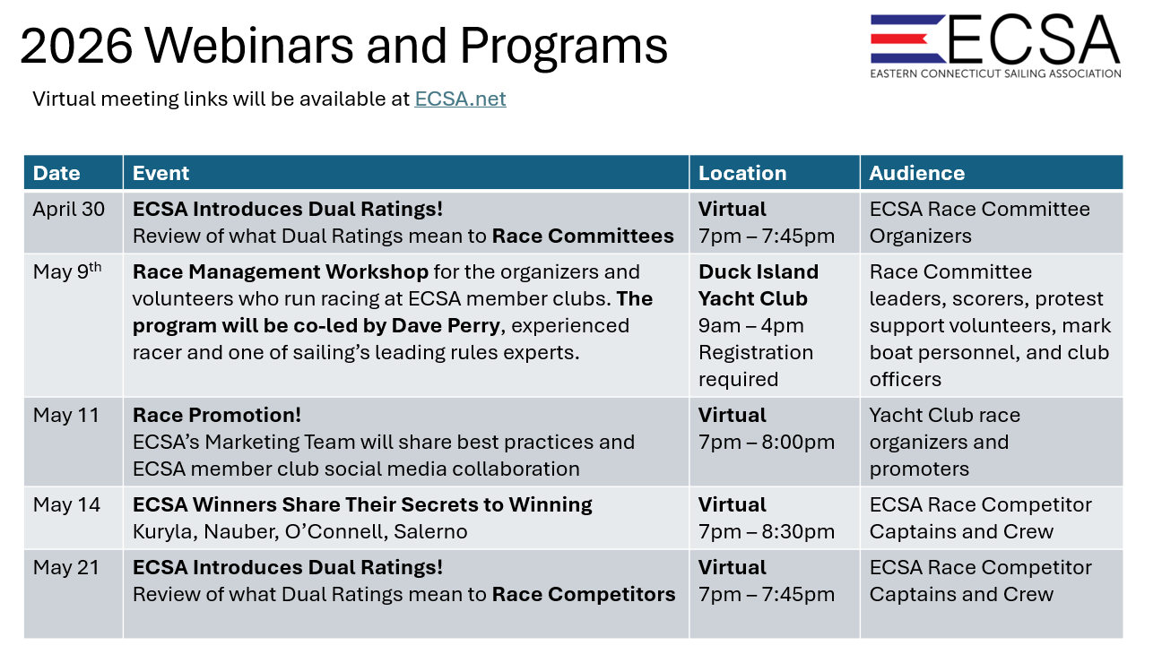 ECSA has scheduled several seminars throughout April and May to support our members, crews, and ongoing initiatives. Please see the schedule below – these events are all offered at no cost.